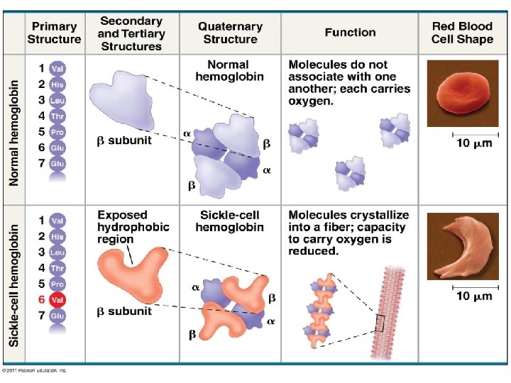 Figure 5. 15 -a + Enzymatic proteins Defensive proteins Function: Selective acceleration of chemical reactions Example: Digestive enzymes catalyze the hydrolysis of bonds in food molecules. Function: Protection against disease Example: Antibodies inactivate and help destroy viruses and bacteria. Antibodies Enzyme Virus Bacterium Storage proteins Transport proteins Function: Storage of amino acids Function: Transport of substances Examples: Hemoglobin, the iron-containing protein of vertebrate blood, transports oxygen from the lungs to other parts of the body. Other proteins transport molecules across cell membranes. Examples: Casein, the protein of milk, is the major source of amino acids for baby mammals. Plants have storage proteins in their seeds. Ovalbumin is the protein of egg white, used as an amino acid source for the developing embryo. Transport protein Ovalbumin Amino acids for embryo Cell membrane