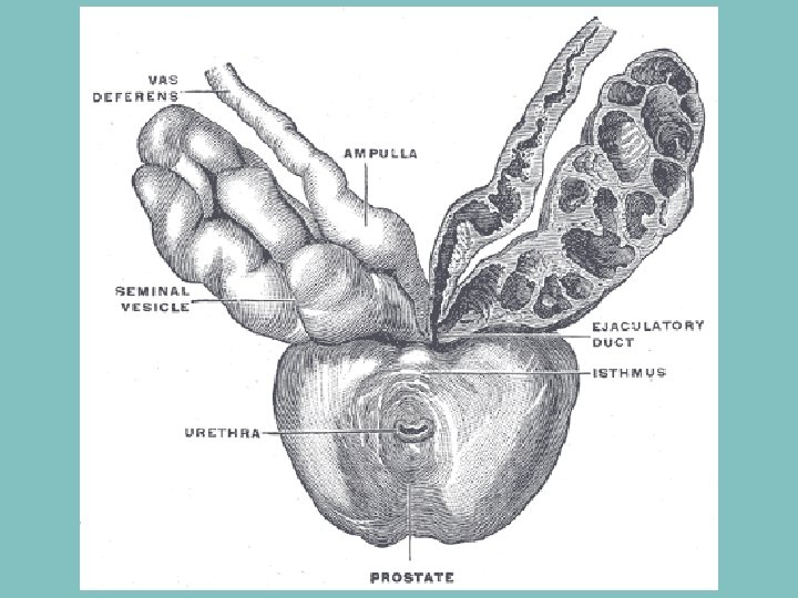 Fxn of Prostate Gland Secretes a thin alkaline substance that makes up 31% of semen n Alkalinity helps protect the sperm from acid in the urethra and vagina n