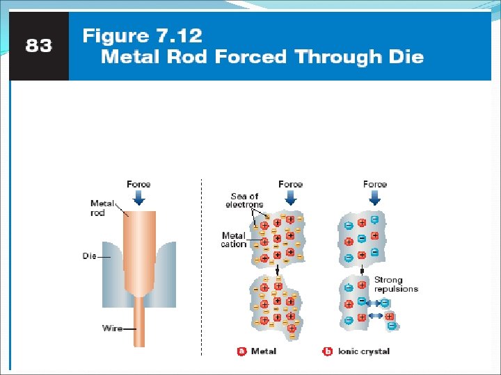 Metallic Bonds Free-floating – Valence electrons do not stay around any one atom as metals hold them very weakly, instead the cations float in a sea of electrons. Malleable – hammered into shape Ductile draw into wire are both related to this as the free floating electrons allow the cations to slide past like ball bearings in oil. + + +