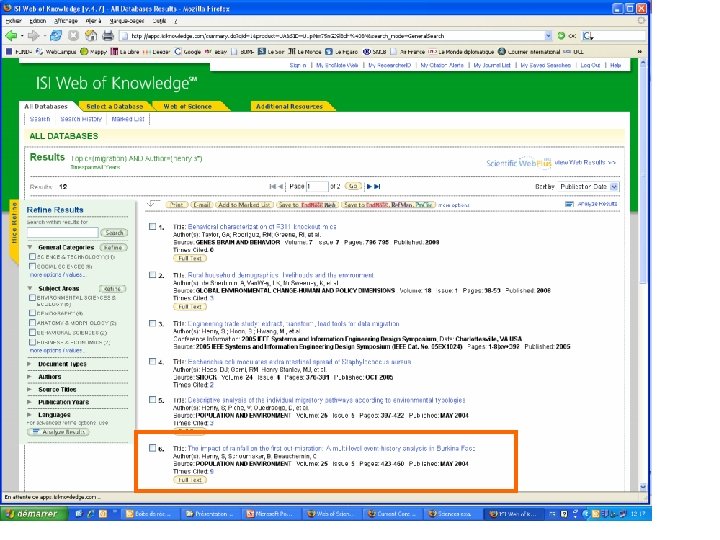 L’influence du climat sur la mortalité infantile au Burkina Faso • Méthode SIG, télédétection, statistiques, variables utilisées, modélisation, etc. – Modèle biographique multi-niveau estimé par régression logistique en temps discret – Utilisation des conditions de vie des enfants au moment du décès et pas au moment de l’enquête • Résultats – Un déficit pluviométrique accroit la mortalité avant 5 ans dans les régions les plus vulnérables (500 et 699 mm par an) – Dans les régions les plus humides, le risque de décès chez l’enfant est réduit en période de sécheresse. – Les enfants de 1 -6 mois sont plus sensibles aux variations pluviométriques que les enfants de 7 -17 mois.