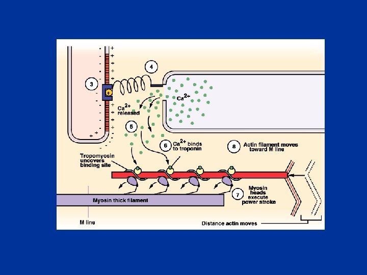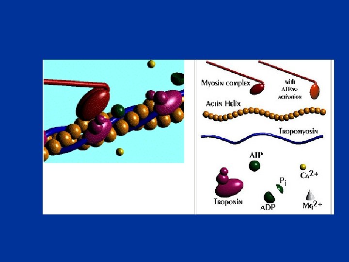 e - Le relâchement Tant que durent les influx nerveux, ces mécanismes se répètent. n Lorsque les PA cessent, le Ca 2+ est aspiré par les citernes (pompes à Ca 2+). tropomyosine vient se replacer en position initiale. n