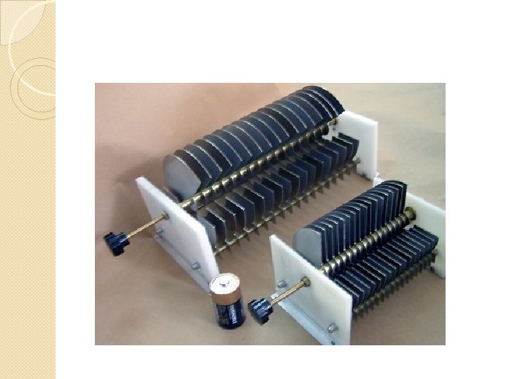 Capacitors � Variable capacitors are used in communication equipment, radios, televisions and VCRs � They can be adjusted by consumers by tuning controls � Trimmers are internal adjusted capacitors that a consumer cannot adjust