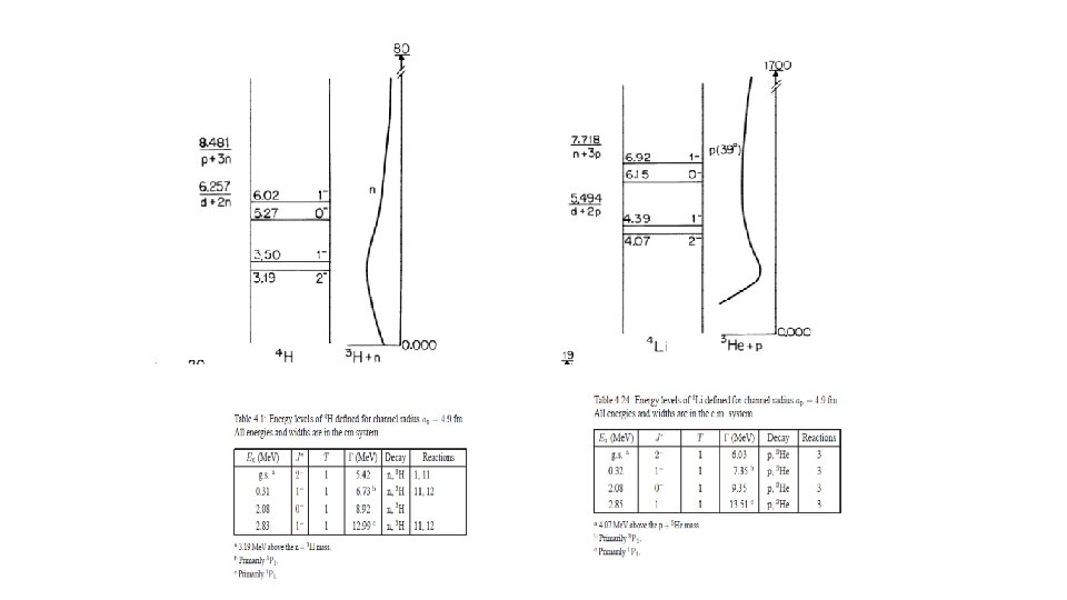 Exp. 4 H (-5. 29 Me. V) If we use W 1=-36 Me. V~-30 Me. V to reproduce the observed data of 4 n, We have strong binding energies of 4 H, 4 He (T=1) and 4 Li. This result is inconsistent with the data of A=4 nuclei. The J=2 - state of A=4 nuclei should be resonant states.