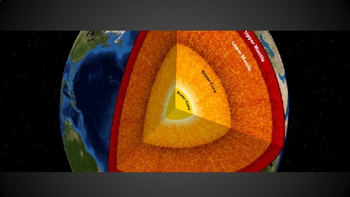 Inner Core Depth: Deepest Layer, 1500 miles (2, 400 km) in diameter Ingredients: Mainly SOLID Iron but likely also some Sulfur and Nickel Pressure: SO HIGH that Iron cannot melt Temperature: 9, 000 -13, 000°F DENSITY: 12. 7 -13. 0 g/cm 3