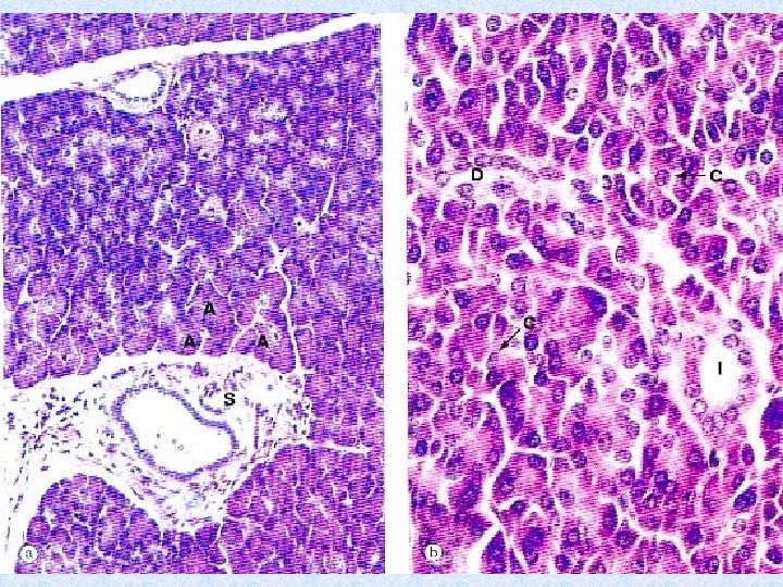 Liver Formed by hexagonal structural units called liver lobules Lobules have a central venule Lobules are surrounded by portal tracts Pig liver lobules have clear connective tissue boundaries