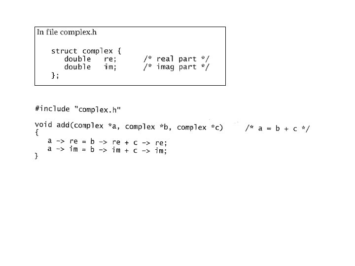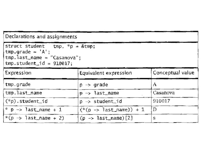 Using structures • assignment works (NOT for arrays) as long as two variables are of the same structure type • structure is more like a primitive type when used as a function parameter – call by value – the whole structure is copied • inefficient • this is one of reasons why there exists the -> operator – if it contains an array, the whole array is copied