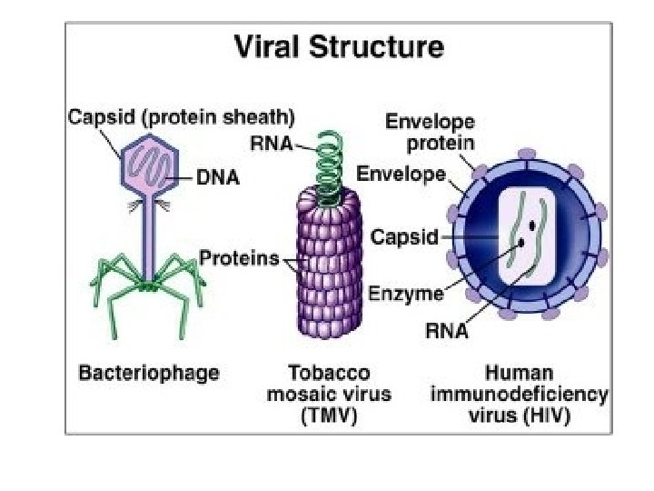 Struktur Virus 1. Mengandung DNA atau RNA 2. Mengandung pelindung protein (kapsid) 3. Reseptor – pada kapsid yang menentukan sel apa yang dapat diinfeksi dan bagaimana virus menginfeksi sel