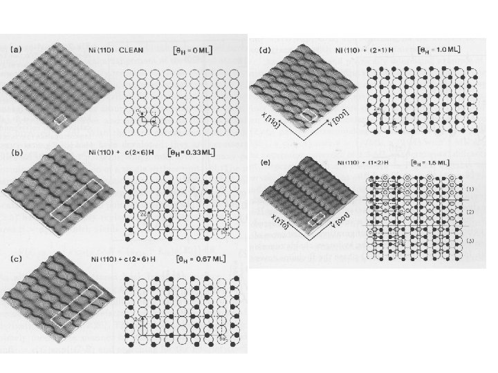 c( 2 x 2 ) ( 2 x 2)R 45 ( 3 x 3)R 30 (110) - c(2 x 2 ) (111) - ( 3 x 3)R 30 M(hkl) – p/c (m x n) Ra E centrování buňky substrát orientace substrátu adsorbát rotace povrchové buňky Ni(001)-p(2 x 2)C