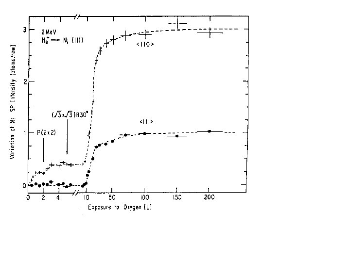 Ni(111) (1 x 1) us 1 = 0, 084 Å us 2 = 0, 077 Å us = 0, 038 Å Rozdíl – relaxace nebo větší kmity povrchových atomů ? Úhlová závislost intenzity Relaxace 0, 05 Å Malá relaxace, větší kmity 20 %