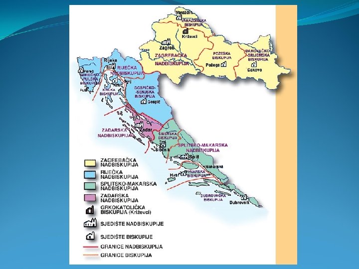 STRUKTURE STANOVNIŠTVA HRVATSKE 1) biološka struktura stanovništva - sastav stanovništva prema spolu: 52% (Ž) : 48% (M) - razlozi: rat, iseljavanje i starenje - sastav stanovništva prema dobi: stacionarno-regresivni tip, izrazito starenje populacije; mlado stanovništvo 21%, zrelo stanovništvo 55%, staro stanovništvo 24%, indeks starosti 115 (115 starih na 100 mladih) - prosječna starost 44 godine! 2) narodnosna struktura - homogena, Hrvati 90%; Srbi 4, 4%; Bošnjaci 0, 7%; Talijani 0, 4% … 3) vjerska struktura - rimokatolici 86, 3%; pravoslavci 4, 4%; muslimani 1, 47%, ateisti 3, 8% 4) obrazovna struktura - 2011. godine 1 % nepismenih, bez osnovne 20 %, viša i visoka 16 % - nije zadovoljavajuća - » odljev mozgova « 5) gospodarska struktura - 2015. godine 38 % aktivnog stanovništva