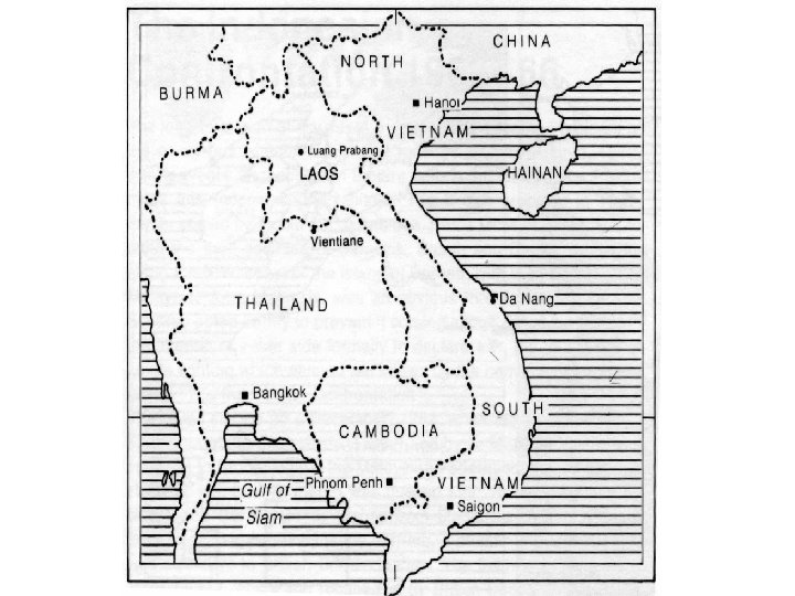 6. Válka ve Vietnamu Přesněji: válka v Indočíně (probíhala i v Laosu a Kambodži); q válku zahájila Francie v roce 1946; q 1954 – ženevská konference; q od roku 1954 v ní pokračovaly USA na základě tzv. teorie domina; q 1964 - rozhodnutí o odvetném leteckém bombardování severního Vietnamu; q 1965 - zapojení amerických pozemních jednotek; q 1969 - počet amerických vojáků dosáhl počet 543 tisíc; q 1968 - Nixonova strategie – tzv. „vietnamizace“ konfliktu s cílem: q zachovat vnitropolitickou morálku v Americe; q poskytnout čas jižnímu Vietnamu na stabilizaci; q motivovat Hanoj k dohodě