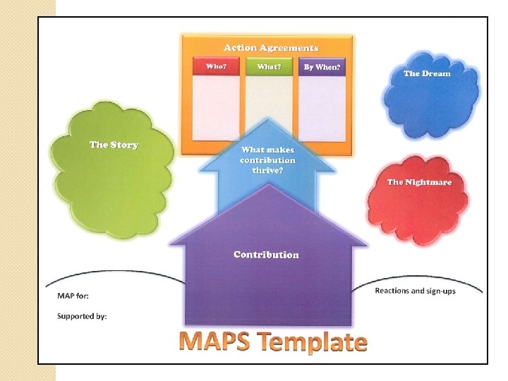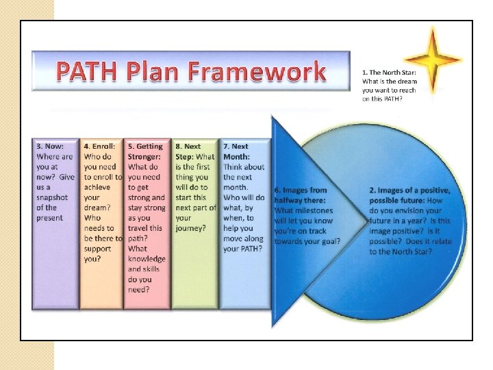 Variety of Tools and Formats Different tools are needed for different purposes, it depends on the individual �MAPS (Mc. Gill Action Planning System) - know someone better and get on the same page �PATH – a specific goal in mind, steps to get there �DPG (Discovering Personal Genius) – time-limited, quick paced, goal-oriented process with the solid outcome of work