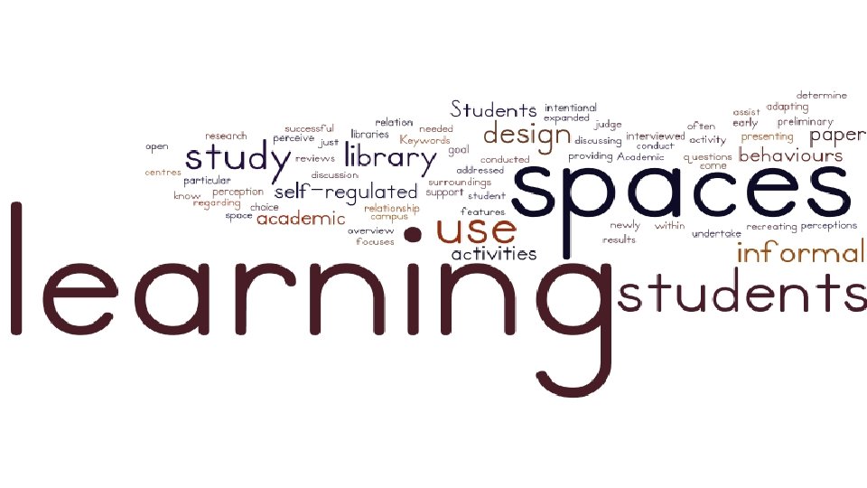 Conclusions • There is a relationship between environmental selfregulation, learning behaviors and learning space • Students know their space and when they seek it out • We need to understand more about students space preferences for learning environments in order to design better informal learning spaces • Our learning space design choices should be intentional, based on an understanding of how students learn and regulate their learning environment.