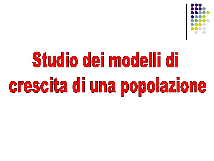 Rapidità di crescita ovvero come e quando la curva cresce e decresce rapidità di crescita crescente rapidità di crescita decrescente 1. 332. 188 16. 726. 553 1. 771. 449 15. 697. 580 2. 345. 791 13. 828. 694 3. 089. 208 11. 457. 743 4. 038. 431 8. 979. 162 5. 228. 243 6. 711. 116 6. 682. 625 4. 829. 096 8. 400. 338 3. 375. 963 10. 334. 735 2. 310. 941 12. 370. 986 1. 558. 582 14. 309. 980 1. 040. 462 15. 875. 357 689. 782 16. 761. 600 455. 178 299. 441 196. 588 128. 890 84. 430 55. 275 36. 174 23. 667 Guardando il grafico si nota che la curva raggiunge il massimo della rapidità e inizia a decrescere circa a metà tra il punto di partenza della popolazione e il numero massimo di individui.