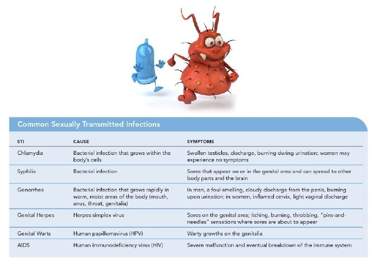 Sexually Transmitted Infections • STIs are also called sexually transmitted diseases, or STDs • Sexually transmitted infections (STI) can affect the sexual organs and the ability to reproduce – may result in pain, disfigurement, and even death • Common bacterial STIs are chlamydia, syphilis, and gonorrhea – treatable with antibiotics