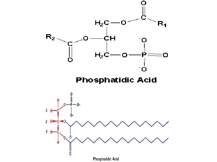 Phosphatidic Acid • Phosphatidic acid is a simplest Glycerophospholipid. • Phosphatidic acid has Glycerol esterified with two Fatty acids at C 1 and C 2. • C 3 is esterified with Phosphoric acid.