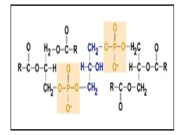 • Diphosphatidylglycerol/Cardiolipin is chemically composed of • Two molecules of Phosphatidic acid linked to one Glycerol.