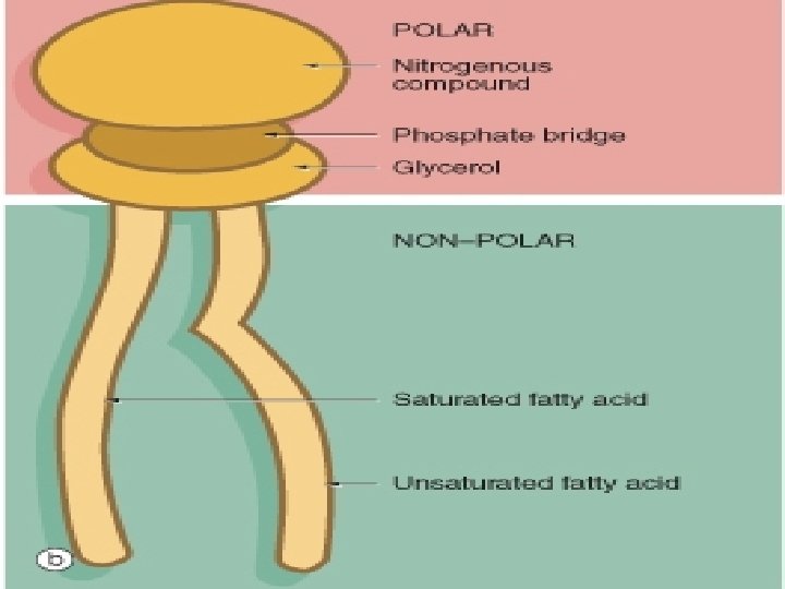 • Hydrophilic/Polar groups of Phospholipids: –Phosphoric acid –Nitrogenous groups • Hydrophobic/non polar groups of Phospholipids : –Fatty acid/Acyl chains