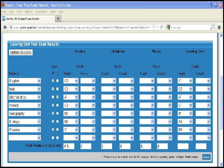 Goals Chart – REACH++ n Useful exercise to start each year n Set your targets for the end of the year n Then work backwards and set what you need to be achieving during the year n When school reports arrive fill out your chart and check your success