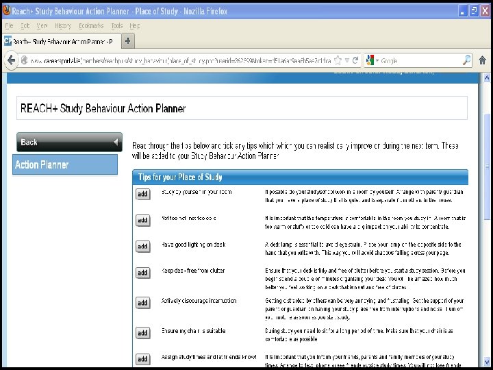 Action plan for success n Minimise clutter and distractions n Write down your goals n Draw up a realistic study plan n Review and adjust plan if needed n Consistency is important n Be honest, if having trouble seek help n Do your best you can’t do any more! n Be organised.