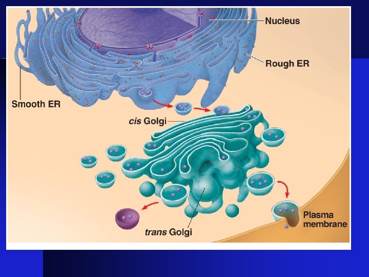 • Carries out the following tasks • • • Synthesis of proteins Transport of proteins into membranes and organelles Transport of proteins out of the cell Metabolism Movement of lipids Detoxification of poisons • Includes the following: Nuclear envelope, ER, Golgi, lysosomes, vacuoles, Plasma membrane