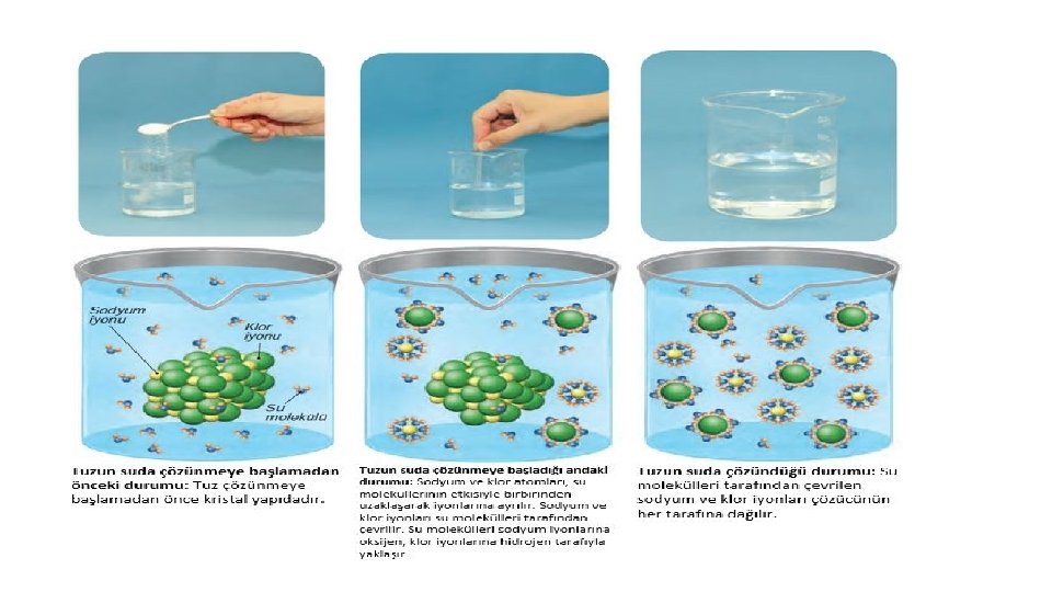 Su, katı fazda iyonları kuşatarak çözelti içine alır ve diğer iyonlardan maskeler.