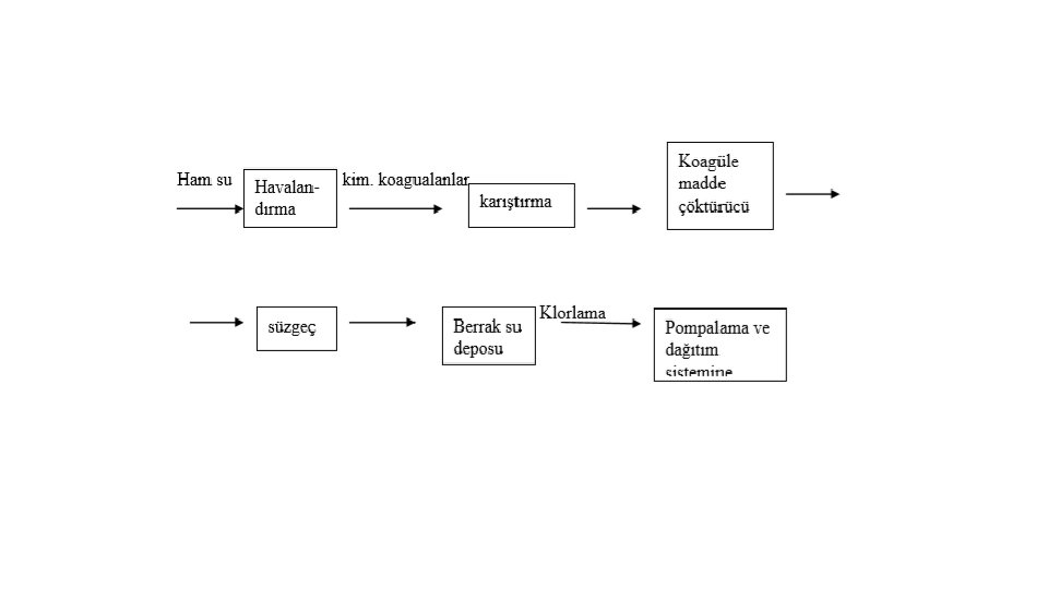 CO 32 - +H 2 O HCO 3 - +OH- Kh= Kw/Ka 2 = 1 x 110 -14/5. 6 x 10 -11 = 1. 8 x 10 -4 HCO 3 - + H 2 O H 2 CO 3 + OH- Kh=1. 4 x 10 -14/4. 3 x 10 -7 = 2. 2 x 10 -8 HCO 3 - + H 2 O H 3 O+ + CO 32 - Ka 2 = 5, 6. 10 -11 Bulanıklığın giderilmesi için çöktürücü konsantrasyonu iyi ayarlanıp (4, 3 -51, 3 ppm) suyun p. H ı (en uygun p. H=6) ve sıcaklığı iyi ayarlanmalıdır. Bu proseslerdeki işlemlerle çökmeyen partiküllerin de ayrılması için su dinlenme havuzlarından aşağıda görülen kum süzgeçlerine sevk edilir.