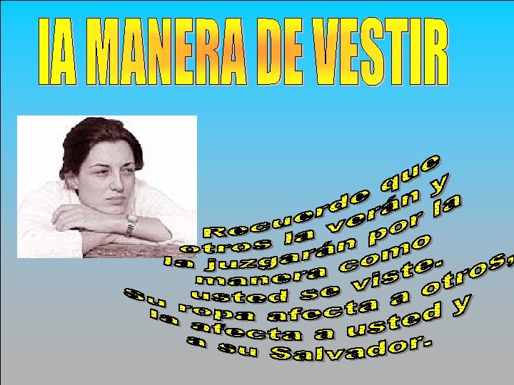 Debes vestirte con sencillez Vestirse con sencillez no quiere decir vestirse sin gusto. . . La sencillez puede ser verdaderamente bella.