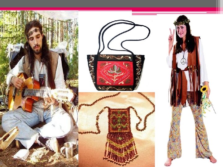 Hippie The philosophy of hippie has affected life and sights of generation of 60 -80 years. At hippie the rules of behavior and the philosophy. All hippies carry a long flowing hair. The forehead and a nape are covered by a thin bandage. There are jeans, sometimes a loose overall of not clear color, a sweater, a sports shirt. On hands bracelets, more often from a tree, a beads or a skin. Many men release a beard. Hippie romanticists, love all bright, original, creative. Want to be independent of public conventions, free persons.