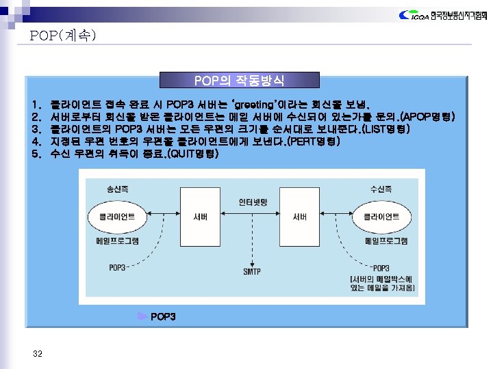 HTTP(Hypertext Transfer Protocol) HTTP의 개요 하이퍼 텍스트 형식의 문서를 인터넷에서 주고받을때 사용하는 프로토콜로서 TCP 80번을 사용. HTTP 관련 표준 RFC 1945 : Hypertext Transfer Protocol – HTTP/1. 0 RFC 2068 : Hypertext Transfer Protocol – HTTP/1. 1 FRC 2069 : An Extension to HTTP : Digest Access Authentication HTTP 트랜잭션 1) 연결 당 하나의 트랜잭션을 수행한다. 2) 각 트랜재션들은 상호 무관하다. 27