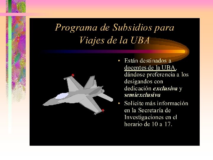 SUBSIDIOS PARA VIAJES Normas para su presentación: i Serán beneficiarios los docentes de la UBA, dándose preferencia a los docentes designados con dedicación exclusiva y semiexclusiva. i Es requisito indispensable para la solicitud de financiamiento que la actividad a desarrollar forme parte de las tareas de investigación o de cátedra. i Las solicitudes serán presentadas en la Mesa de Entradas de la Facultad, acompañada de la siguiente documentación: