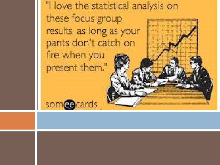 In analysis the point is NOT …. To determine whether people are ‘right’ or ‘wrong’. To diagnose, psychoanalyze, or interpret deeper sentiments To try to pull out hard data; people’s impressions are what’s important. To count people’s responses- but it is ok to say, “a minority took this position. ”