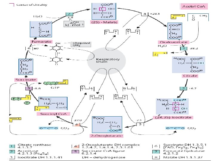 THE ELECTRON TRANSPORT CHAIN Series of enzyme complexes (electron carriers) embedded in the inner mitochondrial membrane, which oxidize NADH 2 and FADH 2 and transport electrons to oxygen is called respiratory electron-transport chain (ETC). The sequence of electron carriers in ETC NADH FMN Fe-S succinate FAD Fe-S Co-Q Fe-S cyt b cyt c 1 cyt c cyt a 3 O 2