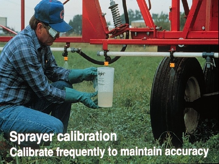 Checking for accuracy • Check several new nozzles – flow rate within 5 -7% of desired output? • Check flow rate frequently – adjust pressure to compensate for small changes output due to wear • Replace nozzles & recalibrate when: – output > 7% change from new nozzle – when pattern becomes uneven