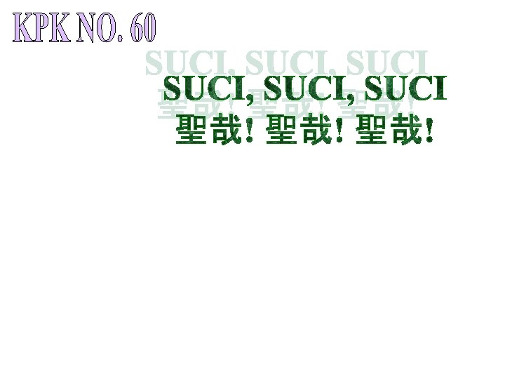 Suci, Suci! Allah Maha Kuasa! Kami dini hari Memuji rahmat. Mu 聖哉, 聖哉! 全能的大主宰! 清晨歡悅歌詠, 高聲頌主聖恩;