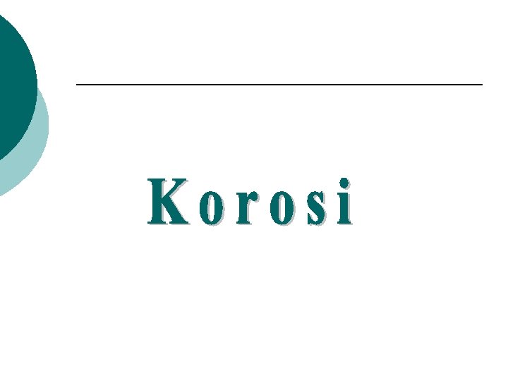 Korosi Karena Perbedaan Konsentrasi Ion Dalam Elektrolit dua metal sama anoda tercelup dalam elektrolit dengan konsentrasi berbeda G per mole tergantung dari konsentrasi larutan. membran Fe Fe Fe+2 katoda Fe+2 Anoda melepaskan ion dari permukaannya ke elektrolit dan memberikan elektron mereduksi ion pada katoda membran untuk memisahkan elektrolit di mana anoda tercelup dengan elektrolit di mana katoda tercelup agar perbedaan konsentrasi dapat dibuat