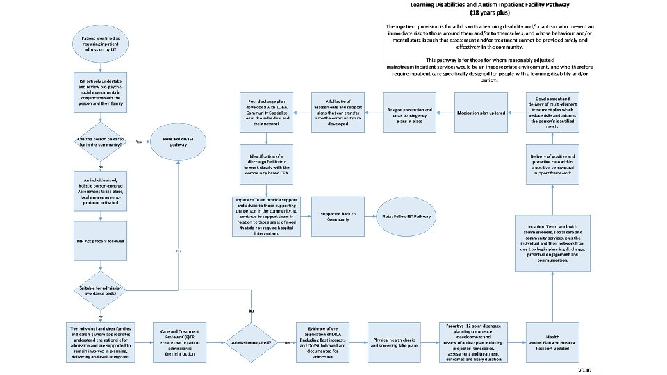 The immediate scope of the Learning Disability (LD) and Autism (ASD) model is to address the quality and safety of the current LD and ASD health provision across East and West Suffolk, whilst recognising the current impact on social care. The objective of the LD and ASD model focuses on building a strong, sustainable health and care response, strengthening the primary care, mainstream, community and specialist mental health services offer. The LD and ASD model will lend itself to the longer term objective of full integration across health and social care by providing the foundation to build this on in the future. Priority Four: Learning Disabilities & Autism SRO: Lisa Nobes (CCG) & Stuart Richardson (NSFT) The model looks to reduce health inequalities through the promotion and implementation of reasonable adjustments and will work with the CYPF, Community and Crisis priorities to promote this. The service will therefore no longer operate seeing EVERYBODY with a LD and or ASD with a mental health need, individuals will be accessing mainstream mental health services. The new model will address the national service model, the NHS Long Term Plan, and the Learning Disability improvement standards for NHS trusts; “A Rights Base Approach”, the Learning Disability Strategy and the #averydifferentconversation Mental Health Strategy. The Pathways included in this pack are: • LD&A Specialist Community Team • LD&A Intensive Support Team • LD&A Inpatient • LD&A Example GP Access • LD&A Community Forensic #averydifferentconversation