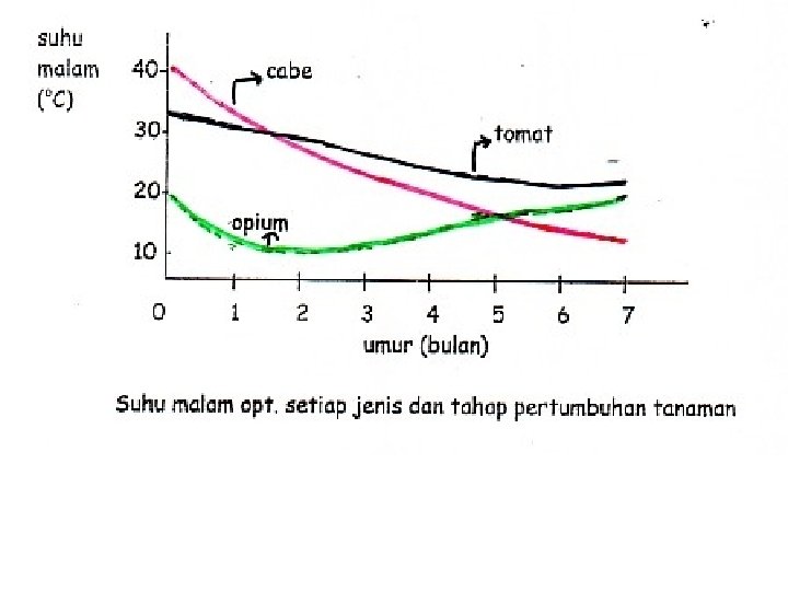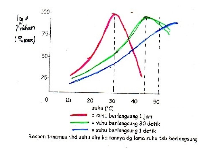 Ditinjau dari aspek suhu itu sendiri, respon tanaman thd suhu dp dibagi dlm 3 komponen : saat suhu berlangsung perbedaan suhu siang dan malam lamanya suhu tertentu mengenai tanaman