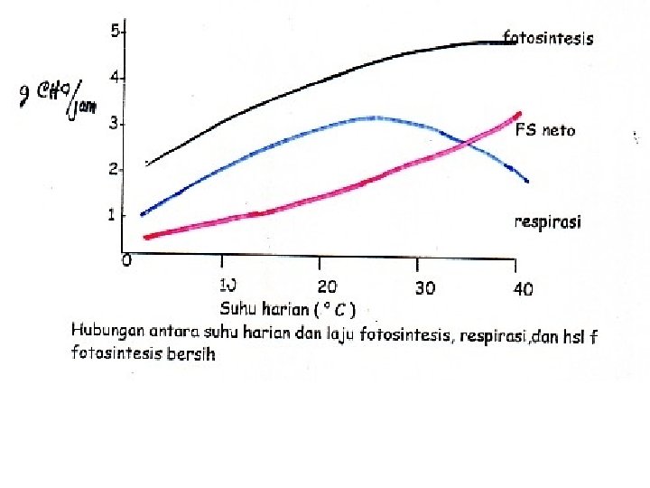 Kerusakan tanaman terhadap suhu ekstrim Di Indonesia jarang terjadi krn variasi suhu tdk terlalu besar Ada bbrp terminology untuk kerusakan tanaman akibat suhu rendah: ØSufokasi : Lambatnya ptbhan tanaman krn permk tanah tertutup salju kekurangan O 2 di dlm tanah ØDesikasi : kekeringan fisiologis bukan krn tdk ada air dlm tanah melainkan absorpsi air oleh akar terhambat krn berkurangnya permiabilitas selaput akar akibat dingin ØHeaving : kerusakan tanaman akibat hubungan bagian atas tan terputus. disebabkan kristal es pd permk tanah. ØChiling : kerusakan akibat suhu rendah diatas ttk beku (± 4 o. C) ØFreezing injury : pembekuan dl jar tanaman yg brp kristal es did lm atau diantara sel shg tanaman rusak scr mekanis.