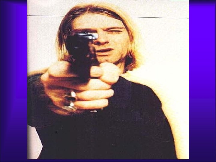 Anecdotal Evidence: Cobain ¨ Regarding guns, Cobain initially felt that they were barbaric and wanted nothing to do with them; later he agreed to go with his friend to shoot guns but would not get out of the car; on later excursions, he got out of the car but would not touch the guns; and on still later trips, he agreed to let his friend show him how to aim and fire. He died by self-inflicted gunshot wound in 1994 at the age of 27.