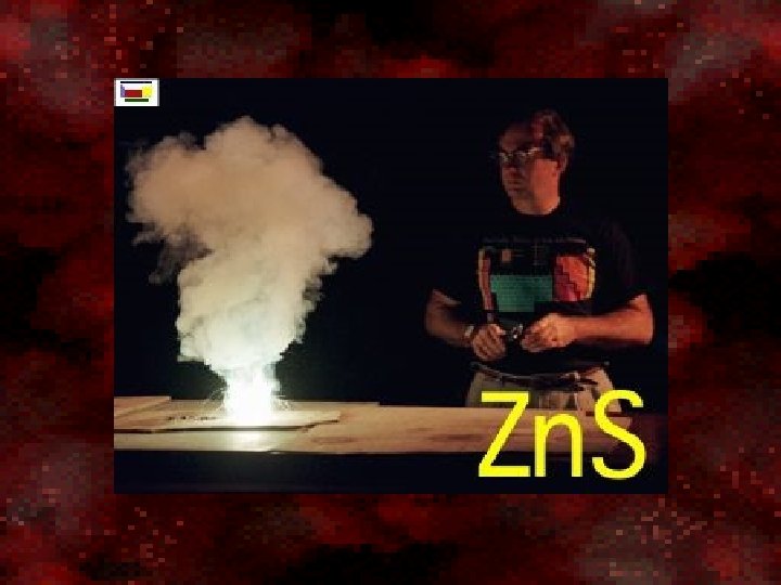 Major chemical properties • Sulfur reacts when mixed with saltpetre and charcoal (reaction of gunpowder) • The on the next slide shows the result from burning a mixture of zinc metal powder and sulphur.