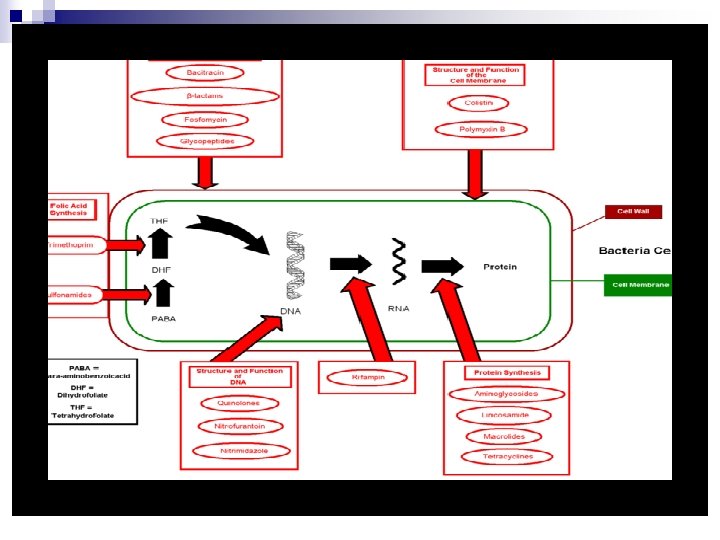 Resistance to sulfonamides n Resistant mutants ¨ Produce increased amounts of PABA ¨ Their Folate synthetase enzyme has low affinity for sulfonamides ¨ Adopt alternate pathway of folate metabolism.