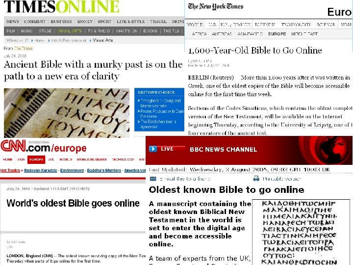 An International Collaboration Collaborating Institutions n Institute for Textual Scholarship and Electronic Editing, University of Birmingham n Institute for New Testament Textual Research, University of Münster n The Centre for Retrospective Digitization, Göttingen State and University Library n Society of Biblical Literature, Atlanta