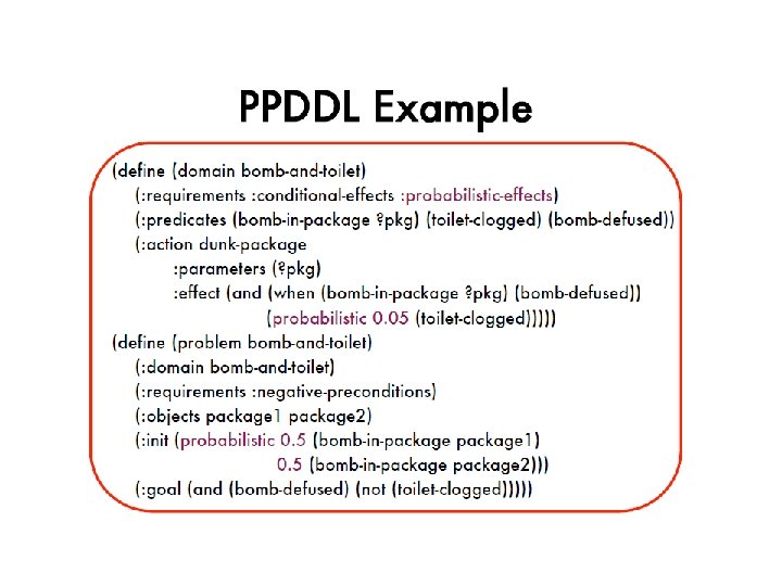Probabilistic Planning --The competition (IPPC) --The Action language. . (PPDDL)