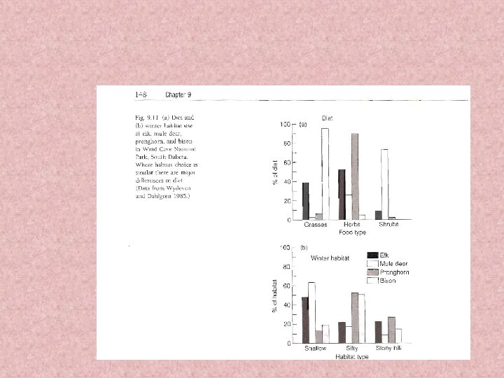 Deer and cows • Identify not only those differences but the temporal pattern of the differences. • Here winter is critical • Note: contradicts idea that should be less overlap when resources are limiting!