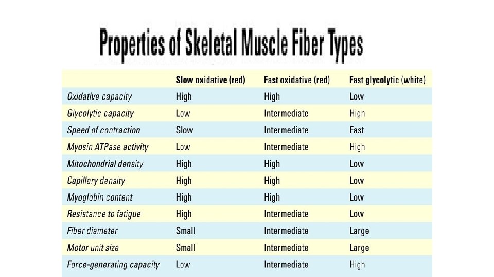 Types of muscle fibers • Various muscles contract at different speed composed of different types of muscle fibers