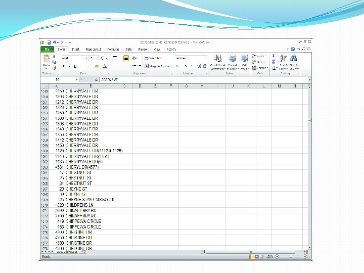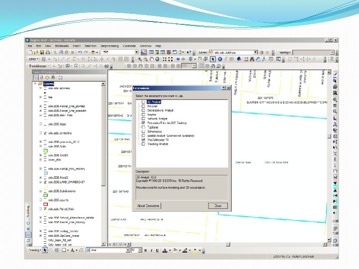 The Path to a Solution �We extracted all addresses from our AS 400(tax database) �Asked for ideas at a Pee Dee Users Group meeting �Consulted with BCS �Geocoded addresses from excel file