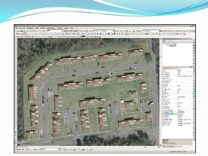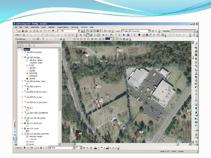 The Solution �Implemented The Addresser Extension for Arc. GIS Desktop provided by BCS �Used aerial photography to manually adjust all addresses to proper location �Coded addresses based on options in The Addresser