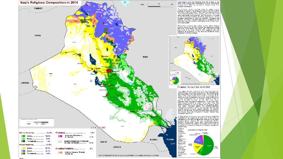 Sunnitská povstání v Iráku od roku 2003 Podrobněji viz text Tomáš Raděje, Irácké povstání v letech 2003 -2009, zadaný jako povinná literatura! Sesazený Saddámův režim se opíral především o sunnitskou menšinu CPA nařízení č. 1 (de-baasifikace) a č. 2 (rozpuštění armády a dalších bezpečnostních složek) Zatímco Američané byli připraveni na válku, nebyli připraveni na mír (Raděj 2009: 40) Irák postupně upadal do chaosu, sunnitské povstání nabíralo na intenzitě, sunnité se nejprve spíše distancují od politických procesů rodícího se nového režimu Částečná stabilizace až po roce 2007 (al-Sahwa) 2006 -2014 – Nurí al-Málikí premiérem (Dawa Party) Po stažení amerických sil v r. 2011 opět docházelo ke zhoršování bezpečnostní situace
