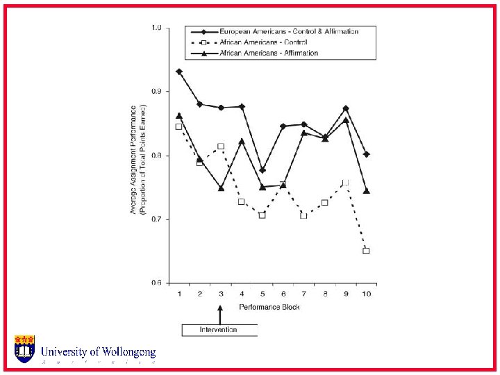Value affirmation improves objective performance • Cohen et al. , 2006, Science • Theory 1. People are motivated to maintain self-integrity 2. Negative group characterizations (e. g. , black stereotypes in U. S. ) pose chronic threat to selfintegrity 3. This threat, if too severe, can undermine performance
